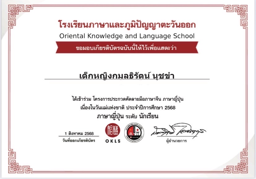 ได้เข้้าร่วม โครงการประกวดคัดลายมือภาษาจีน ภาษาญี่ปุ่น เนื่องในวันแม่แห่งชาติ ประจำปีการศึกษา 2568