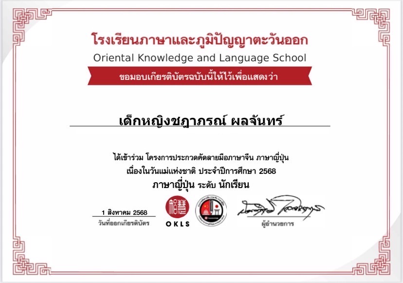 ได้เข้้าร่วม โครงการประกวดคัดลายมือภาษาจีน ภาษาญี่ปุ่น เนื่องในวันแม่แห่งชาติ ประจำปีการศึกษา 2568