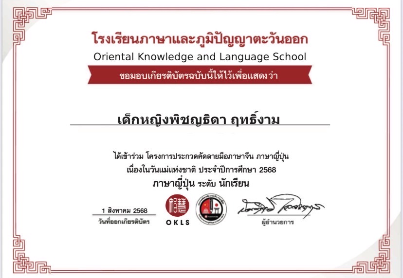 ได้เข้้าร่วม โครงการประกวดคัดลายมือภาษาจีน ภาษาญี่ปุ่น เนื่องในวันแม่แห่งชาติ ประจำปีการศึกษา 2568