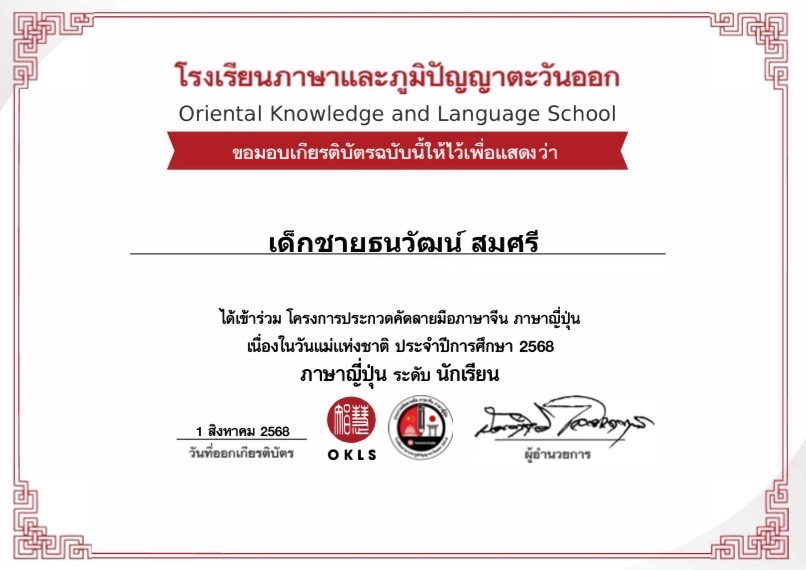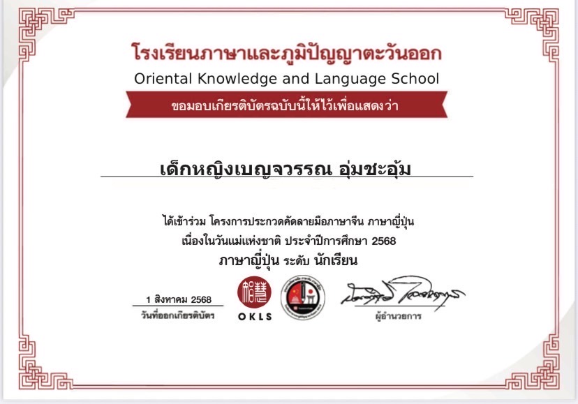 ได้เข้้าร่วม โครงการประกวดคัดลายมือภาษาจีน ภาษาญี่ปุ่น เนื่องในวันแม่แห่งชาติ ประจำปีการศึกษา 2568