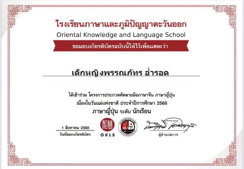 ได้เข้้าร่วม โครงการประกวดคัดลายมือภาษาจีน ภาษาญี่ปุ่น เนื่องในวันแม่แห่งชาติ ประจำปีการศึกษา 2568