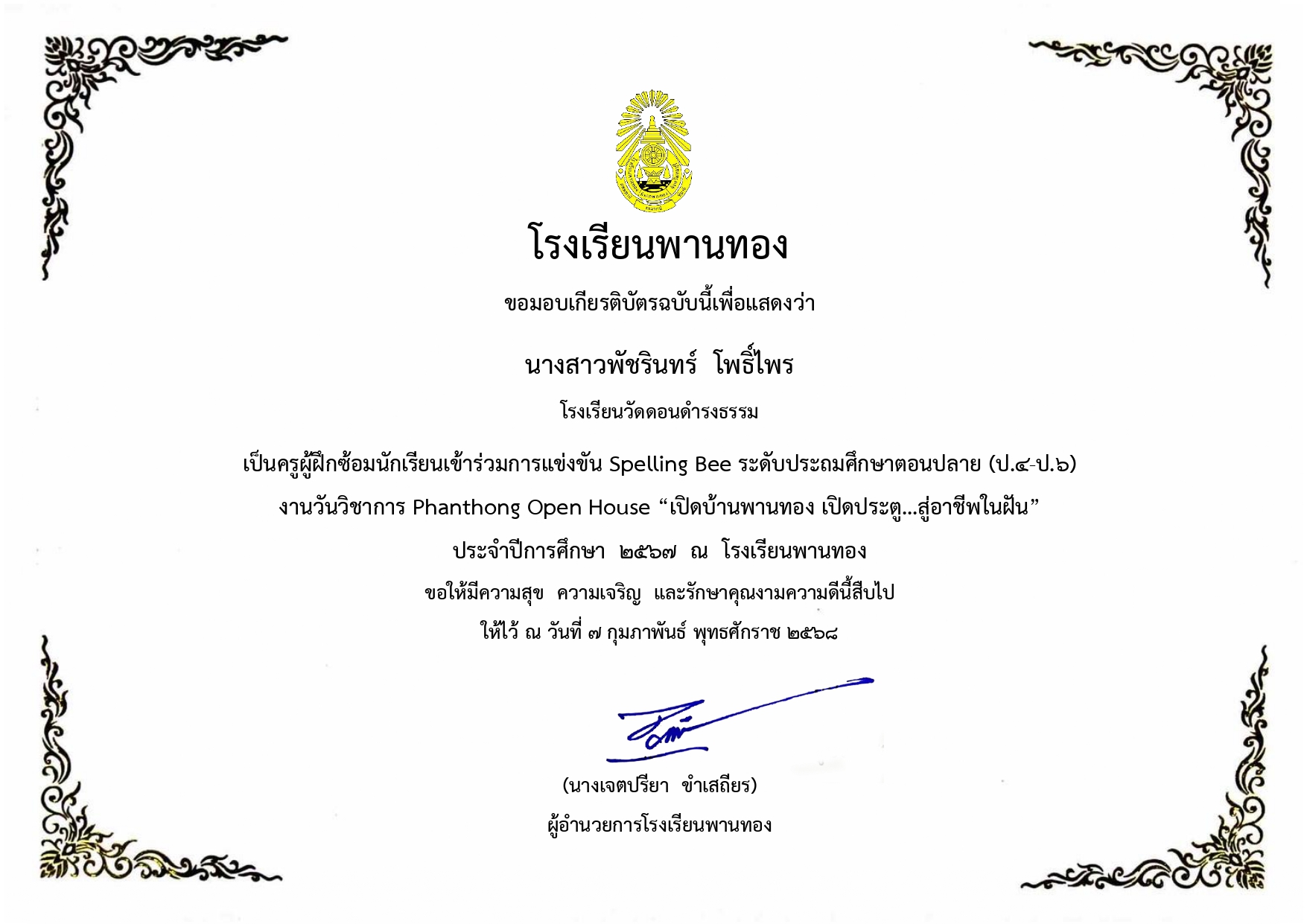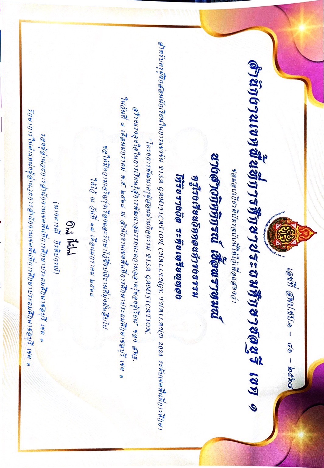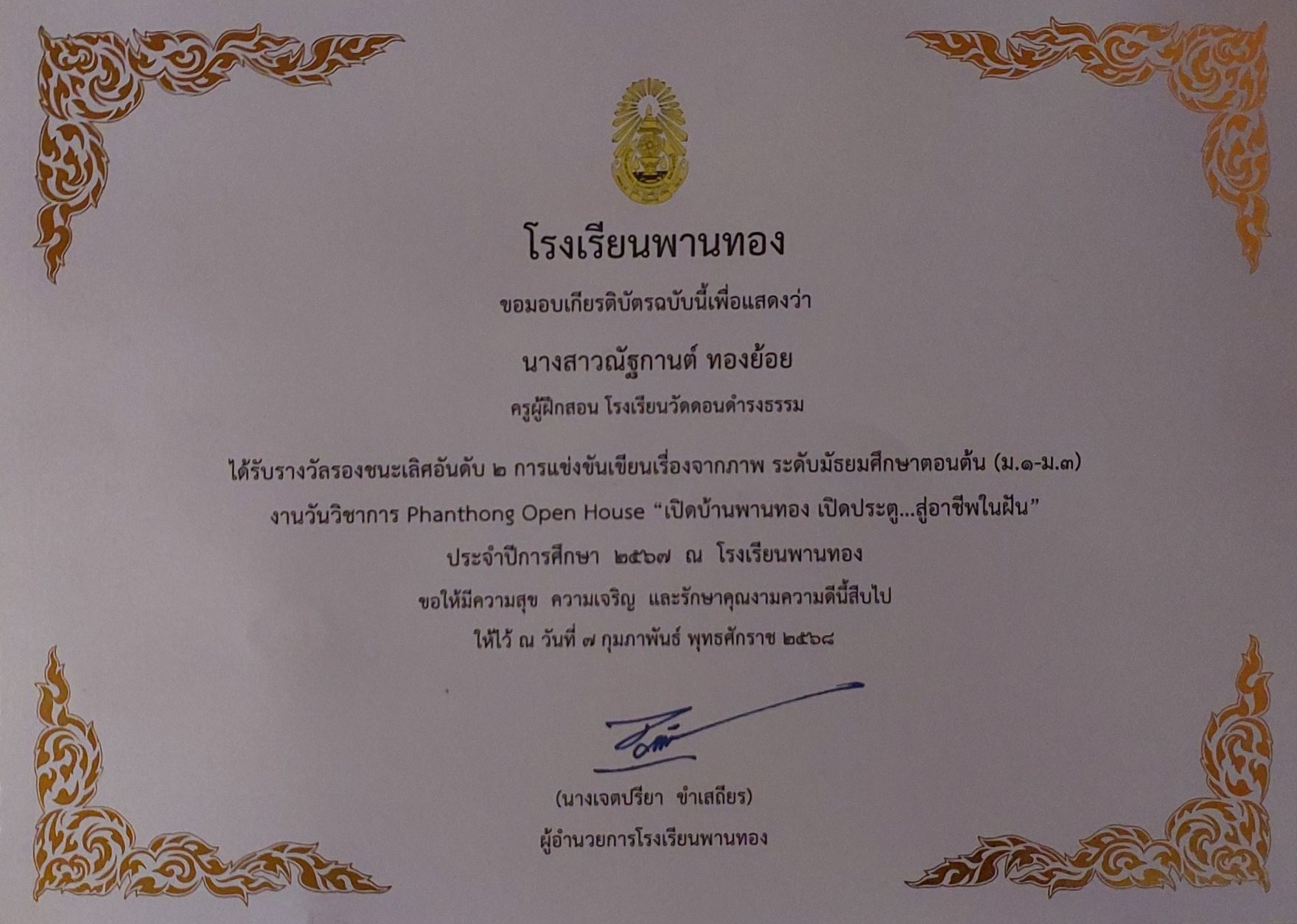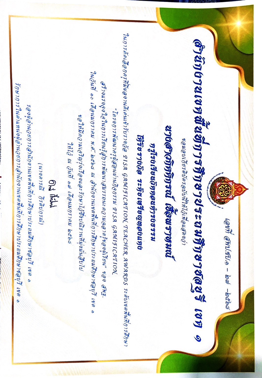 ได้รับรางวัลระดับ"ดีเยี่ยม" ผลงานที่มีวิธีการปฎิบัติที่เป็นเลิศ(Best Practice) ประเภทผู้สร้างสื่อเทคโนโลยีดิจิทัล ระดับการศึกษาขั้นพื้นฐาน(OBEC CONTENT CENTER)ประจำปีงบประมาณ ๒๕๖๘ |